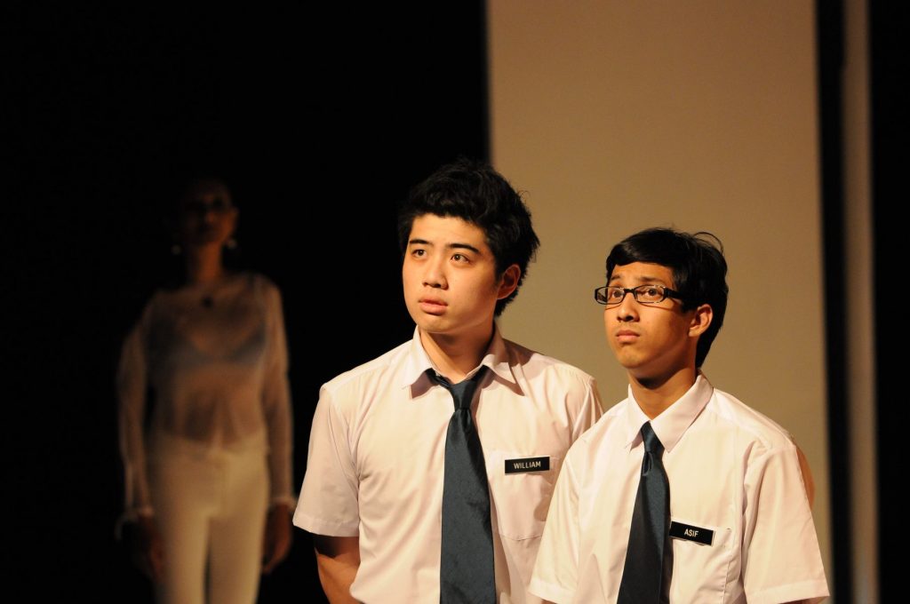 So it begs the question, does the play work? In moments, it does. The play succeeds in its smaller and quieter scenes. The interactions between the group of friends made up of William, Asif, Mimi (Firdaus Che Yahaya) and Mona (Hazarul Hasnain), for example. Their banter made me wish I had a group of friends like that in school, with the space to authentically be ourselves and share who we are, without fear of repercussion. Whether intentional or not, they built a safe space between themselves. Other scenes include the vulnerable moments between Chep and Burn, especially during a powerful prayer scene. Watching two Muslim boys pray together and hold space for one another in a religious setting really made me pause. I found myself asking if that was the first time I had seen such vulnerable forms of Muslim and Malay masculinity on stage.