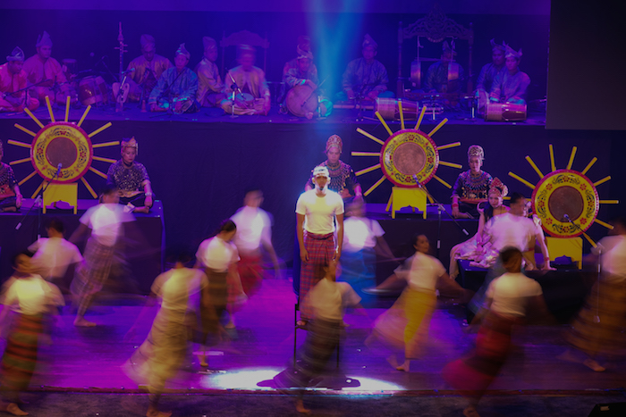 The show opens with the resounding, anthemic beat of the rebana ubi – six of these large drums are spread across the stage and played by two drummers each. The drums remain on stage throughout the entire production. None of these performances are presented in isolation – dancers, musicians and musical equipment stay on set even as other groups and performers take the stage. On one hand it symbolises the abundance of different threads of Kelantan’s cultural fabric coexisting together in the same space, creating a visual or spatial tapestry, but at points it had an overcrowded effect; some pieces were overshadowed by the presence of non-essential elements sharing the stage.